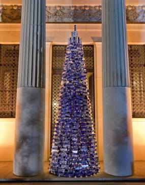 El peculiar árbol de Navidad es una estructura piramidal de seis metros y medio de altura y unos 2,20 metros de base. Ni en la Academia ni en Espasa, la editorial que ha publicado el Diccionario, tienen constancia de que se haya construido antes un árbol de estas características.